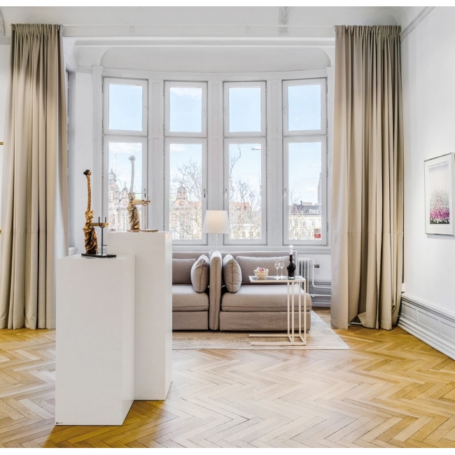 En hvit søyle gir ro til alle slags rom og setter fokus på det du ønsker å presentere. Enten det er en skulptur, vase, et trofé eller et produkt, med en hvit søyle fra Solits vil ethvert objekt få den oppmerksomheten det fortjener. Den diskrete fargen og den stramme designen gjør at søylen passer til nesten alle interiørtyper: fra elegant moderne til klassisk eller industrielt.