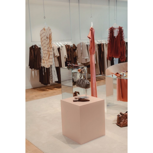 En pidestall i speilglass gjør mer enn bare å bære. De reflekterende overflatene sørger for at lys, farge og form reflekteres. Slik blir objektet ditt synlig fra flere vinkler. Dette tiltrekker seg automatisk oppmerksomhet og forsterker den visuelle effekten. I et utstillingsvindu, på en messe eller som butikkutstilling skaper pidestallen også en følelse av ekstra plass. Den glir subtilt inn i omgivelsene, mens selve objektet fremheves enda mer. Det gjør denne pidestallen ideell for sko, tilbehør eller eksklusive produkter som virkelig bør få lov til å stikke seg ut.