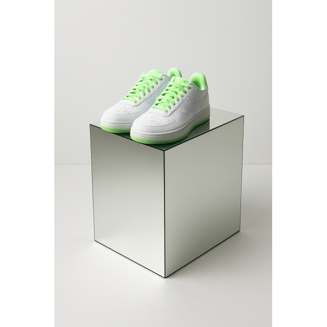 En pidestall i speilglass gjør mer enn bare å bære. De reflekterende overflatene sørger for at lys, farge og form reflekteres. Slik blir objektet ditt synlig fra flere vinkler. Dette tiltrekker seg automatisk oppmerksomhet og forsterker den visuelle effekten. I et utstillingsvindu, på en messe eller som butikkutstilling skaper pidestallen også en følelse av ekstra plass. Den glir subtilt inn i omgivelsene, mens selve objektet fremheves enda mer. Det gjør denne pidestallen ideell for sko, tilbehør eller eksklusive produkter som virkelig bør få lov til å stikke seg ut.